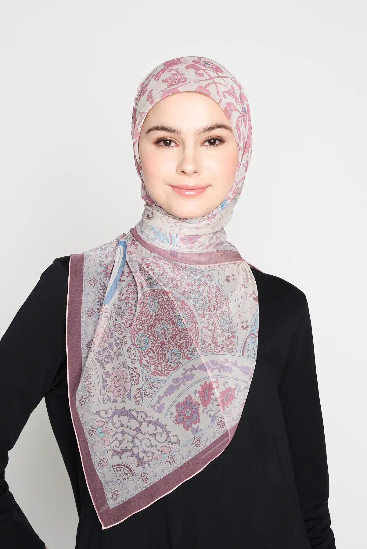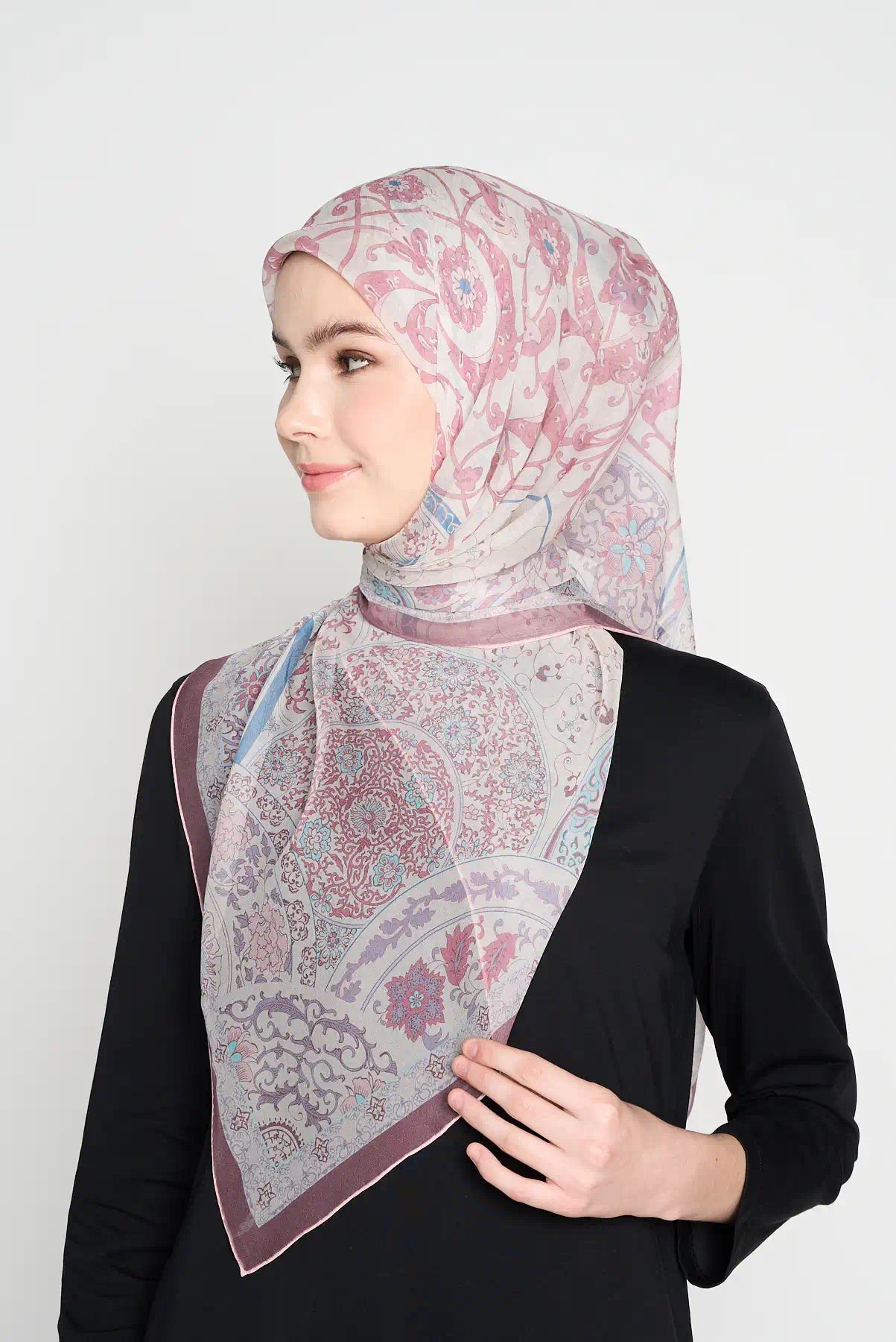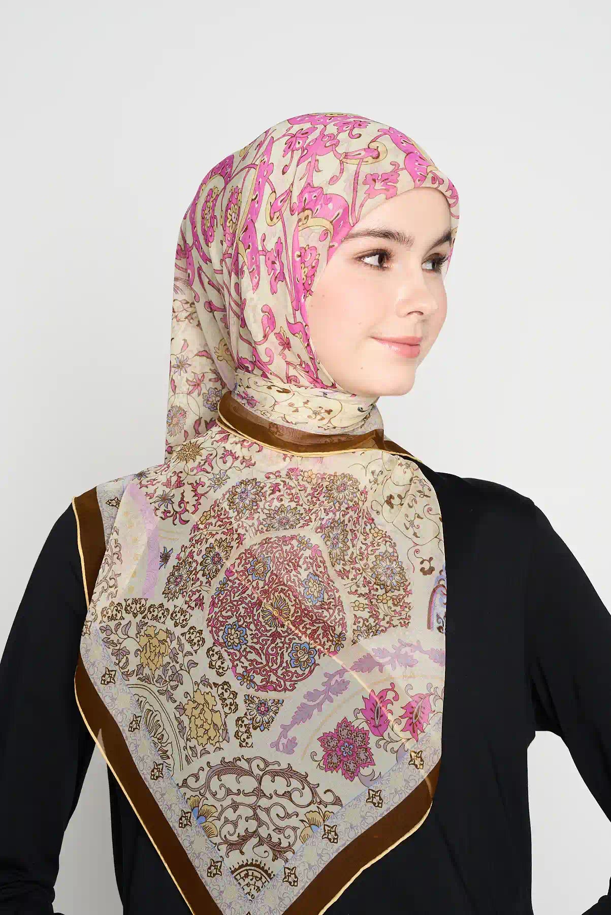 Ballet blossom is one of our most loved designs. Many women like it for its soft and pretty look. Now also available in square, a special addition to our CREPE SILK range.