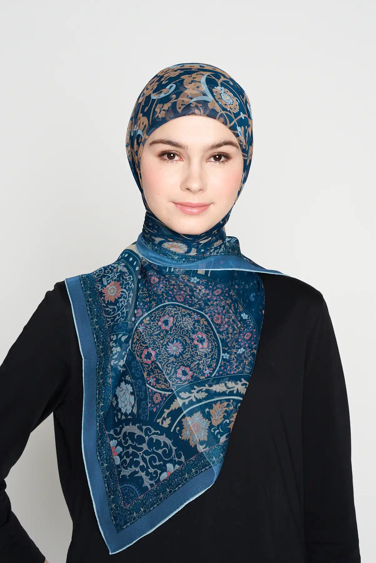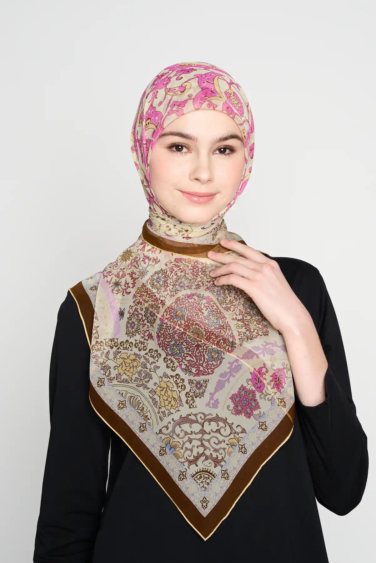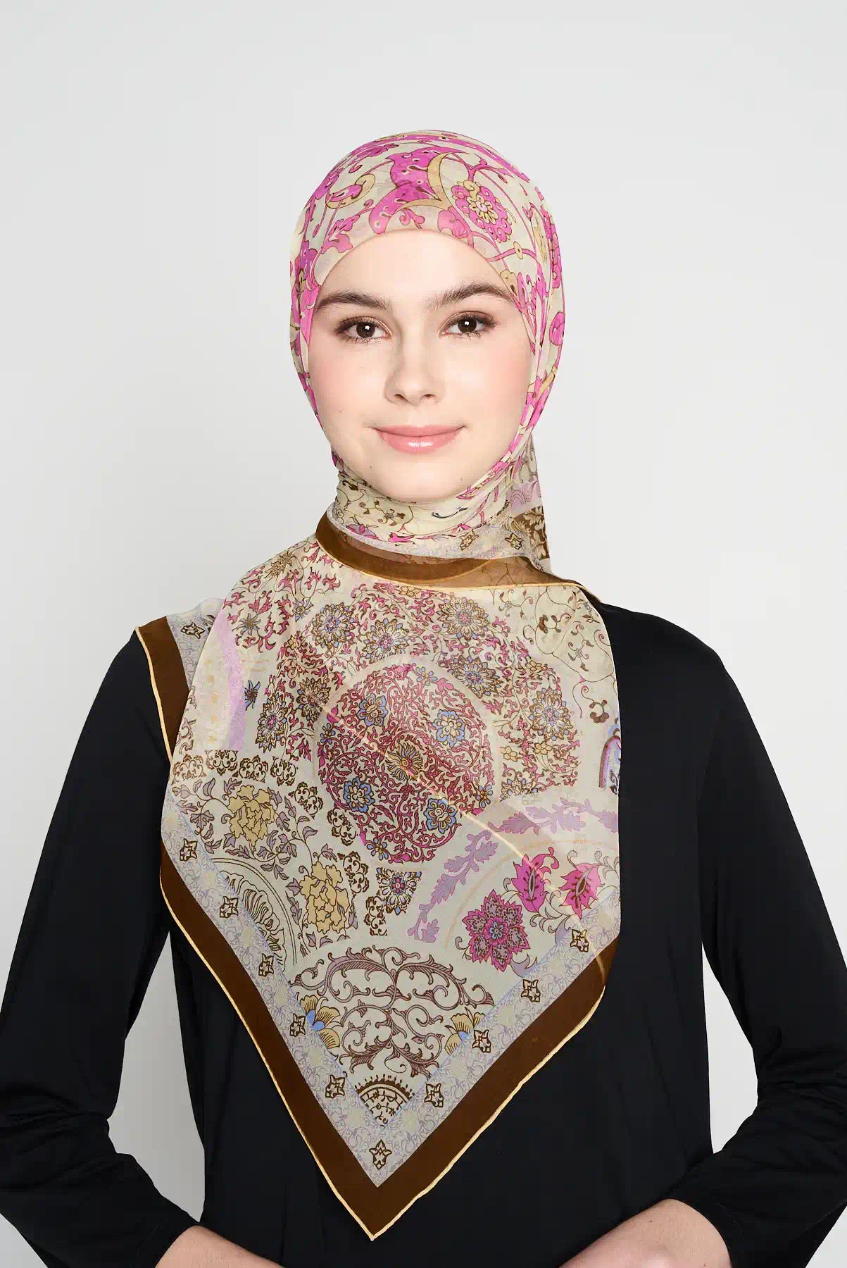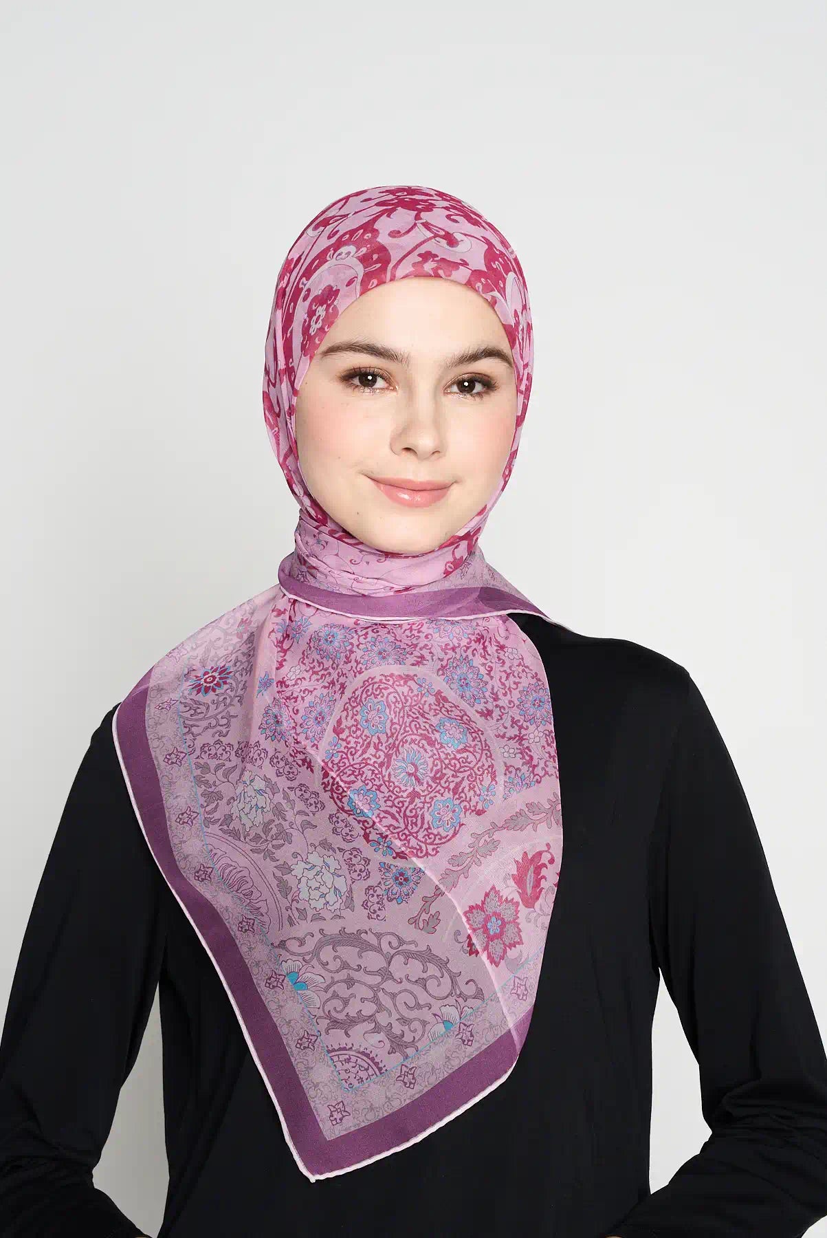 Ballet blossom is one of our most loved designs. Many women like it for its soft and pretty look. Now also available in square, a special addition to our CREPE SILK range.