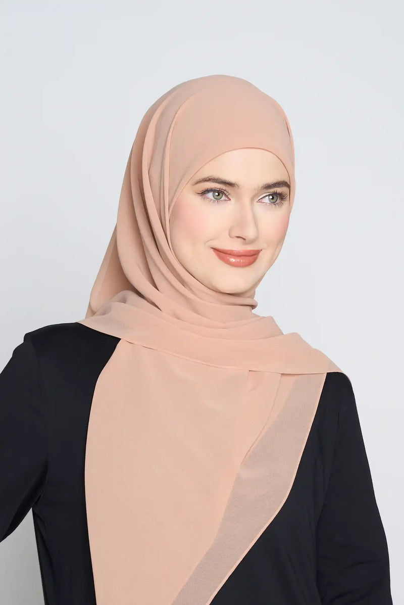 if you are like me, i like my awning melekap kat muka, tak tajam. this is for you, georgette is my most fav fabric for shawl and bawal, it gives flowy effect and tak panas langsung, so nak lilit tercekik leher is not a problem. loe love love arzu scarf so much
